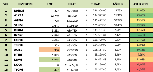 Hisse senedi portföyüm bu ay %20’lik getiri ile ana portföyümü sırtladı. Bist100’ün bir miktar altında kalsam da getiri oranından gayet memnunum.
